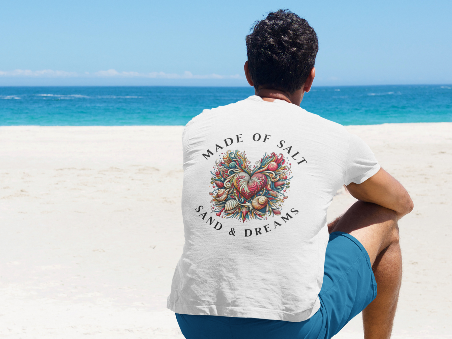„Das 'Made of Salt, Sand & Dreams' T-Shirt ist einfach fantastisch! Der Rückendruck ist ein echter Hingucker, und die Qualität des Stoffs fühlt sich super auf der Haut an.Ich liebe es, wie das Design meine Leidenschaft für das Meer widerspiegelt.“